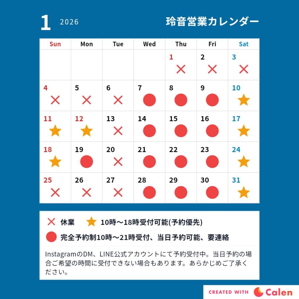 1月の営業カレンダーはコチラをご覧ください↓